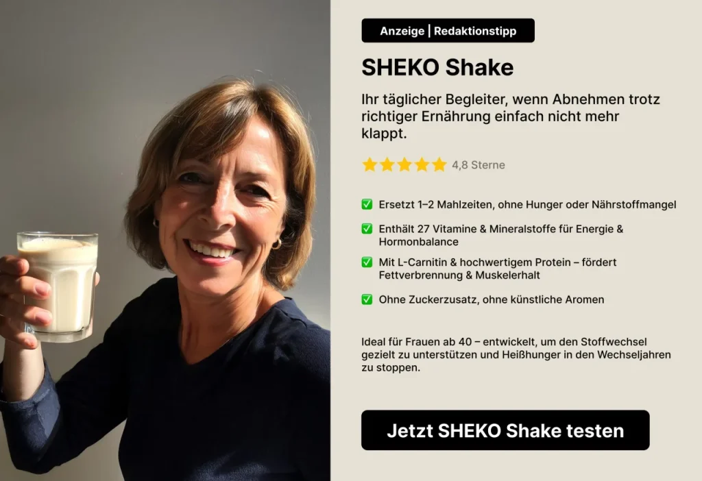 In unserem Test konnten einige Teilnehmer:innen mit SHEKO sogar bis zu 7 kg in vier Wochen abnehmen – ohne Hungern, ohne Verzicht und mit echtem Sättigungsgefühl. Entscheidend ist dabei nicht nur die Kalorienreduktion, sondern auch das richtige Shake-Konzept.